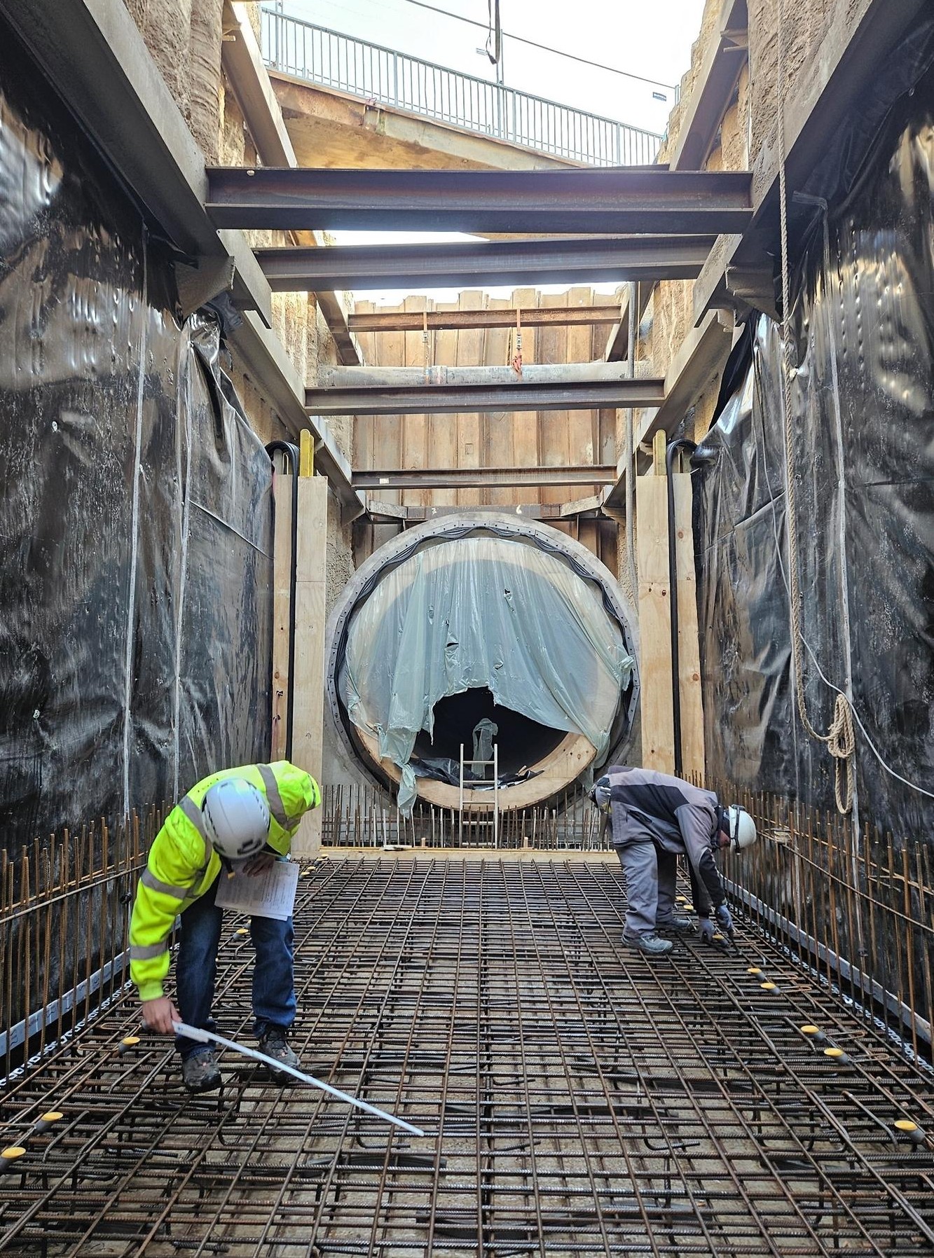 Foto: StEB Köln. Zu sehen ist die Schnittstelle zwischen dem Anschluss Pumpwerk Martinusstraße und dem Stauraumkanal des Zuleitungssystems. Das Foto darf ausschließlich im Zusammenhang mit dieser Pressemitteilung verwendet werden.