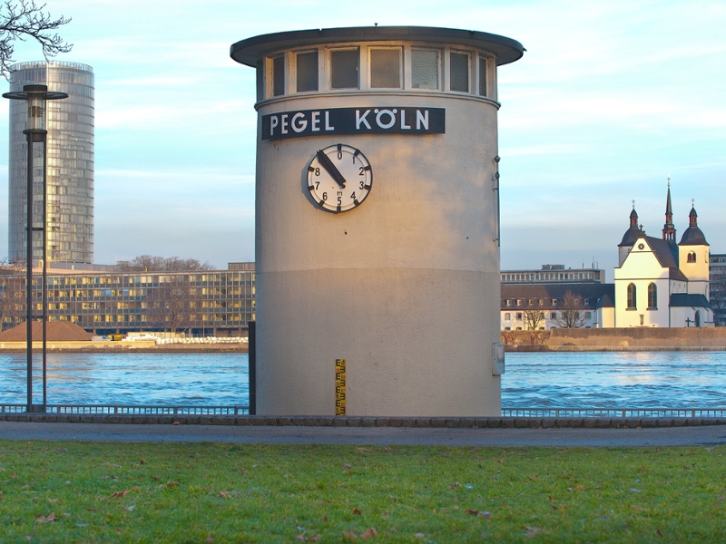 Der Wasserstand des Rheins wird für Köln in der Altstadt am sogenannten Kölner Pegel (Flusskilometer 688) gemessen. Ab einem Pegelstand von 4,50 Metern werden erste Fuß- und Radwege vor der Hochwasserschutzlinie überschwemmt.