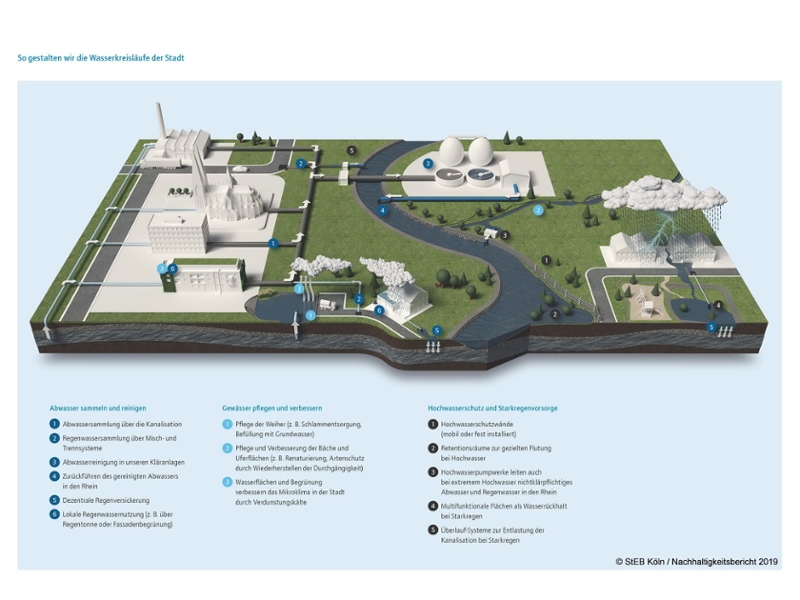 Gerade in Zeiten zunehmender klimatischer Veränderungen ist ein verantwortungsvoller Umgang mit den Ressourcen Wasser und Energie unerlässlich, um die Lebensqualität in Köln dauerhaft zu sichern. Die StEB Köln entwickeln im Rahmen ihres Umweltmanagementsystems dafür innovative und nachhaltige Lösungen, die schrittweise zur Anwendung kommen.